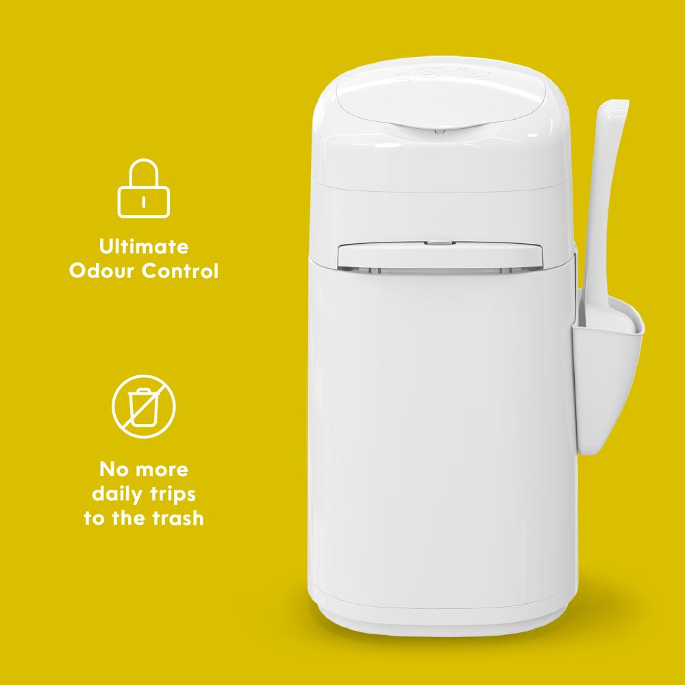 - Simple to use - A fresher home in just 3 easy steps. Scoop clumps from the litter box, open the lid and drop the clumps, and pull the handle to lock away litter and odors.