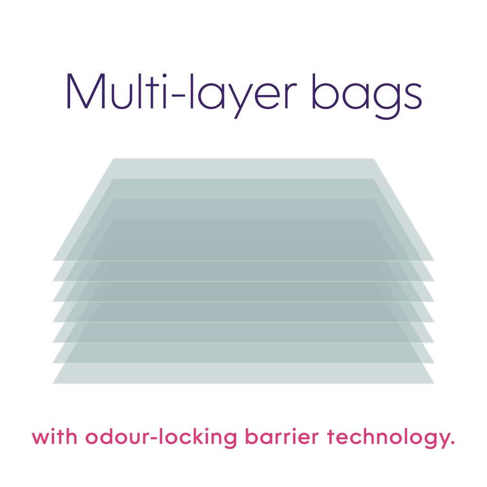 Ultimate odour control - Multi-layer refill bag with odour-locking barrier technology that prevents odour from escaping.