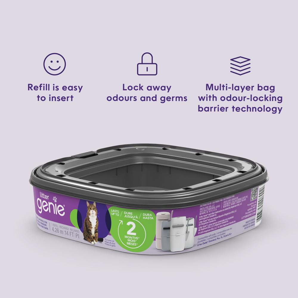 Use the Litter Genie Standard Refill with a compatible Litter Genie pail to make cleaning your cat’s litter box easier than ever. Featuring 14 feet of continuous multi-layer film with odour-locking barrier technology, this refill helps ensure your home stays fresh. Lasting up to 2 months for one cat, the continuous film allows you to cut and tie bags to your desired size, offering both convenience and minimal waste. Designed to perfectly fit your Litter Genie cat litter disposal system, the Standard Refill makes litter box maintenance effortless, helping you save time and effort.