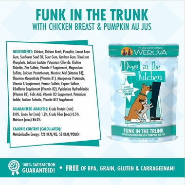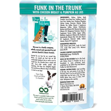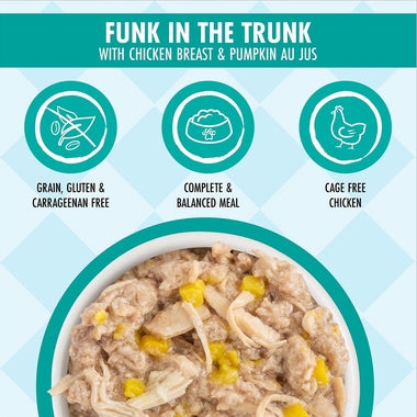 Put some funk in your pooch’s day with this tasty recipe made just for them! Crafted with cage-free chicken and chunks of pumpkin in a flavorful au jus, this high-protein pouch is perfect for keeping picky eaters happy and satisfied.